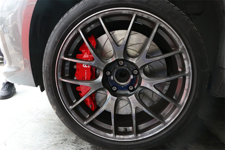 AP的剎車盤比原車剎車盤的尺寸要大,盤面有弧線花紋,而且內置渦輪葉片通風槽。無論在剎車效果,還是散熱性能上,都是遠超原車剎車盤。